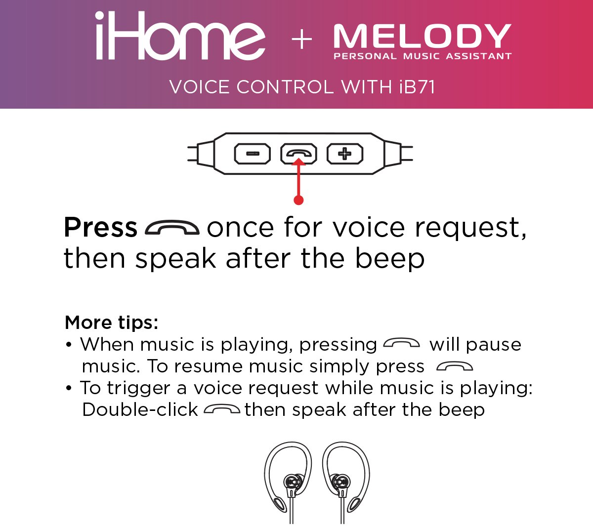 Features iPX5-rated water-resistant construction for sweat proof use and protection from the elements. Enjoy rich, detailed sound with enhanced bass response without inconvenient cables and cords (earpieces are connected by a stylish fl at cable for tangle free use). Bluetooth 4.0 wireless capability lets you listen to audio from your mobile device from up to 30 feet away, while our custom fit ear cushions make extended listening a pleasure. Internal rechargeable lithium-ion battery provides 4 hours of continuous music or talking. Built-in echo-cancelling mic allows you to have wireless phone calls and an in-line remote control puts track control, play/pause, answer/end calls and volume control within easy reach. Multiple ear cushions and earclips for a secure fit. Works with Melody Music Assistant that allows you to use your voice to access music while on the go, no Wi-Fi required. Includes important extras such as USB charging cable and travel pouch.
